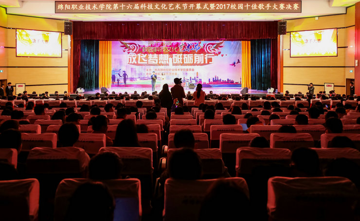11月14日, 我校第十六届科技文化艺术节开幕式暨2017校园十佳歌手大赛在学术报告厅隆重举行。党委常委、副校长钟志万出席。相关系部负责人、各系团总支书记、辅导员参加活动。 钟志万为本次活动致辞。他指出:科技文化艺术是强国之本,是实现伟大中国梦的重要保证。校园科技文化艺术节对引领校园文化、增强创新意识、强化专业技能、提高学生综合素质具有重要作用,是展示学校教育成果,推动科技创新的重要途径。他对全体师生提出了3点要求:一要落实“理想育人、组织育人、文化育人、实践育人”的方针,创新活动方式,提高学生创新能力,积极营造科技创新的浓厚氛围;二要认真弘扬十九大精神和社会主义核心价值观,积极打造文明和谐校园文化,陶冶学生情操,引领学生“勤学、善学、乐学”,树立终身学习的态度;三要积极营造高雅的艺术校园氛围,提高学生涵养、净化学生心灵、开发学生智力。 随后,钟志万等共同登台,触动水晶球,拉开了我校第十六届校园科技文化艺术节的大幕。 歌手大赛中,各位选手依次进行参赛表演,精彩的表演点燃了现场气氛,掌声不断。在活动过程中,官方微博线上活动也在同步进行。经过激烈、紧张的比赛,陈斯逸夺得冠军,蒲恒宇、邱钰涵分别夺得二、三名。