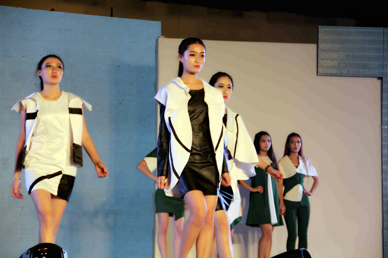 随后,院领导与师生一起,观看了本次校园科技文化艺术节的第一台晚会——大型T台走秀,由艺术系同学带来的“MY 2015 SHOW”。